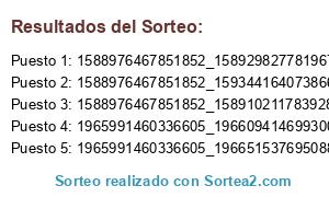 Este sorteo ha sido certificado por Sortea2. Sortea2 garantiza que: