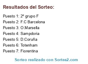 Lista de participantes: Totenham, F.C Barcelona, O.Marsella, D.Coruña, Sampdoria, 2º grupo F, Fiorentina.