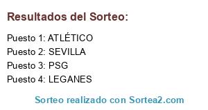 Lista de participantes: PSG, ATLÉTICO, LEGANES, SEVILLA.