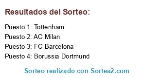 Lista de participantes: FC Barcelona, Tottenham, Borussia Dortmund, AC Milan.