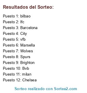 Lista de participantes: lfc, vfb, Brighton, Marsella, Bvb, Chelsea, City, milan, Barcelona, bilbao, Wolves, Spurs.