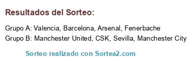 Lista de participantes: Barcelona, Valencia, Manchester City, Manchester United, CSK, Fenerbache, Arsenal, Sevilla.