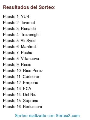Resultados del sorteo: