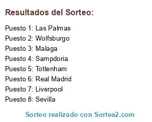 Lista de participantes: Real Madrid, Liverpool, Wolfsburgo, Tottenham, Sampdoria, Malaga, Sevilla, Las Palmas.