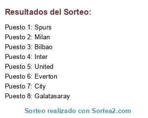 Lista de participantes: United, Galatasaray, Everton, City, Bilbao, Milan, Spurs, Inter.