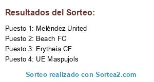 Lista de participantes: Erytheia CF, Meléndez United, UE Maspujols, Beach FC.