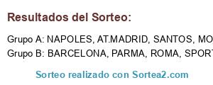 Lista de participantes: SPORTING, AT.MADRID, MONACO, ROMA, BARCELONA, NAPOLES, SANTOS, PARMA.