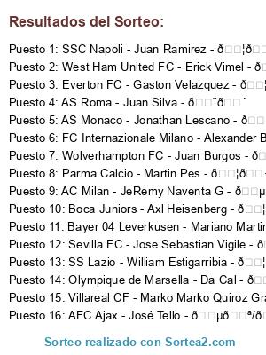 Resultados del sorteo:
