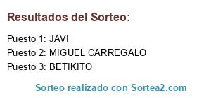 Lista de participantes: JAVI PALACIOS86, ZORRILLOESTEPA, DABERRO, FERNANDO TABARES, JESUS J., RAUL, MANUEL JESUS, ADRIAN JARANA, FERNAN RAMIREZ, MIRIAM, ADAN, BETIKITO, FRAN BASTOS, MIGUELONCE, MARIOHM89, VICTORLOPEZRBB, LA VIEJA, CARMEN CABRERA, JOSE MANUEL, ISMAELPS91, ADRIAN 14, JAVI, FERNANVILLALBA, RAFA C, ISRAEL MEJIAS, MIGUEL CARREGALO, CARMEN CARREGALO, MIGUEL A, NOCU, 3QUIFES TOMAS QUIFES, TASDAO, BETIS BETIS BETIS, CHAPA DE BETICISMO, IRINEY, HAYERRO, LAS CIGARRERAS, LUNI PUNI.