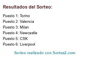 Lista de participantes: Milan, Liverpool, Valencia, CSK, Newcastle, Torino.