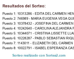Resultados del sorteo: