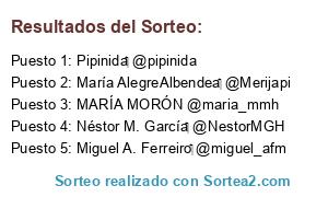Lista de participantes: María AlegreAlbendea @Merijapi, Miguel A. Ferreiro @miguel_afm, MARÍA MORÓN @maria_mmh, Carolina Cepeda @Carolina93cr, Néstor M. García @NestorMGH, Pipinida @pipinida, Pablo Romero @pablo6romero, A. Morales @PhisyAndMe, Antonio FP @antoniosulfu, Frasco @franloplop, Ele @eleherasjim.