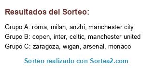 Lista de participantes: arsenal, copen, monaco, celtic, zaragoza, anzhi, manchester united, manchester city, wigan, roma, inter, milan.