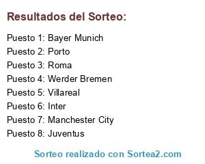 Lista de participantes: Juventus, Werder Bremen, Inter, Bayer Munich, Roma, Villareal, Porto, Manchester City.