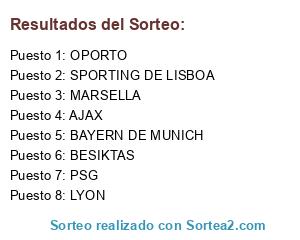Lista de participantes: PSG, AJAX, LYON, BAYERN DE MUNICH, BESIKTAS, SPORTING DE LISBOA, OPORTO, MARSELLA.
