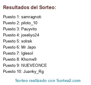 Lista de participantes: Mr Japo, Pauyvito, Khorne9, Iglesol, samragnoti, Juanky_Rg, NUEVEONCE, solrak, joseliyo24, piloto_10.