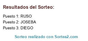 Lista de participantes: DIEGO, HEREDIA, JOSEBA, LOREN&JAVI, QUIQUE, RUSO.