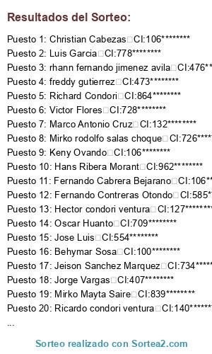 - Puesto 8: Mirko rodolfo salas choque CI:726********