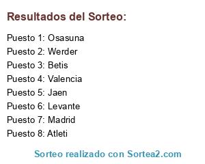 Lista de participantes: Werder, Betis, Madrid, Atleti, Osasuna, Levante, Valencia, Jaen.