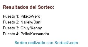 Lista de participantes: Chuy/Kenny, Nallely/Dani, Pollo/Kassandra, Pikiko/Vero.