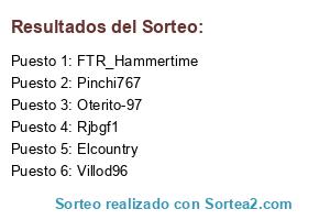 Lista de participantes: Villod96, Rjbgf1, Pinchi767, Oterito-97, FTR_Hammertime, Elcountry.