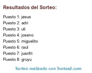 Lista de participantes: juanfri, jesus, uli, adri, gruyu, miguelito, raul, joseno.