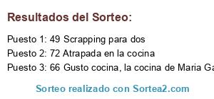 Lista de participantes: 1 ¡Qué rico!, 2 Las comidas de Carmen, 3 La cuineta divertida, 4 Entre fogones con David, 5 Entre fogones con David, 6 La Juani de Ana de Sevilla, 7 Y sigo en la cocina, 8 Berigudtaim, 9 Berigudtaim, 10 Pan frito o rebanás, 11 La casita de las galletas, 12 La cocina de Camilni, 13 Anyol cocina, 14 Comer de todo, 15 Comer de todo, 16 La cuineta de Isabel, 17 La magia de Sonia, 18 Cocina chilena, 19 Les Folies d’Elisita, 20 La cocina de Adita, 21 La cajita de Nieveselena, 22 Travi en la cocina, 23 Comer especial, 24 Cosas nuestras, 25 En la cocina de Bea, 26 La cocina de la Rubi, 27 Siguiendo a Nenalinda, 28 Mis mejores y sanas recetas, 29 Mis mejores y sanas recetas, 30 Bloc de recetas, 31 De cocinas y tacones, 32 Con aroma a caserito, 33 Con 2 huevos, 34 Recetas del día a día, 35 Sweet 180º, 36 Recetas y condimentos, 37 Para hincar el diente K+M=M+K, 38 Para estar por casa, 39 La cocina de Amandita, 40 Mis recetas . Trini Altea, 41 A comer y a callar, 42 Mi adorable cocina, 43 ¡Sano y de rechupete!, 44 Migas con locura, 45 La cocina de Mesilda, 46 Sabores&Olores, 47 Las marías cocinillas, 48 La cocina de Samira, 49 Scrapping para dos, 50 El paraíso de los golosos, 51 Pio recetas, 52 Rapa tachos, 53 Las recetas de Manans, 54 La cocina de Angie, 55 Odaklesam, 56 La cocinera de Betulo, 57 Anyol cocina, 58 La cuineta divertida, 59 COME CONMIGO, 60 Tomillo, laurel y otras cosas del comer, 61 El ágora de Ángeles, 62 Mindolina en la cocina, 63 Gabriela, clavo y canela, 64 Mis mejores cosas, 65 Rebuscando en la despensa, 66 Gusto cocina, la cocina de Maria Galvan, 67 The chocolate pocket, 68 Cocinando en casa, 69 Desde mi cocina con amor, 70 Ensalada de recetas, 71 Notas en mi cocina, 72 Atrapada en la cocina, 73 La libreta de recetas, 74 Aprendo y Cocino – Cocina Taller, 75 Jessica’s Cooking Lab, 76 Kui_netes, 77 La cocina de mi hermana, 78 Del buen comer y algo más, 79 Food travel and wine, 80 Dulce Diana.