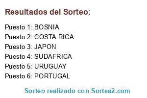 Lista de participantes: URUGUAY, COSTA RICA, JAPON, SUDAFRICA, PORTUGAL, BOSNIA.
