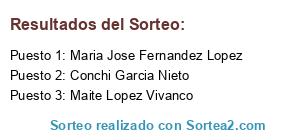Lista de participantes: Macarena Soria, Mara Mar, TitaMu MuArtesana, Belen Vila, Pilar Herrezuelo, Maria Eugenia Arias Lozano, Begoña C. Diaz, Silvina Gancera, Luciana Vidal, Montse Romero, Ainodea Manualidades, Nuria Hernandez Castillo, Paz Crespo, Susi Maogi, Maria Gamarra Marcos, Carmen Castellano Juárez, Carmen Maria Moral Garacia, Domingo Carrique, Felisa Martinez Castellano, Maria R Simon, Ester La Fera, Martaminguelana Beni, Chelo Moa, Veronica Frutos da Silva, Moli Val, Ana Cristina Sanchez Peña, Cositas Wapas, Mariajosé Moyano, Maria Wasmer Romero, Eva Trujillo, Rosa María Sierra Álvarez, Jose Ramon Gonzalez Ventura, Juan Carballal, Sofia Garcia Yagüe, Lucia Xaica, Kapitana Corsaria Pirates, Elena Knyazhechenko, Lucia Sanchez Mouriz, Luisa Fluixa, Maria Jose Fernandez Lopez, Pilar Mendez, Miriam C. Fernández Lopez, Veronica de Carolis, Carolina Velázques Cobo, Bárbara González, Beatriz Valle Garcia, Susana Garcia Castellano, Miriam Vanesa Fernandez Rodríguez, Conchi Garcia Nieto, Luisa Gutierrez Valbuena, Rocío Calzaditos, Noelia Olmo, Macarena Infantes, Vanessa Vallejo, Mami Duna Carolina, Maria Andrea Haro Morfe, Yessica Lloret Márquez, Ainhoa Patricia Juárez, Angelines Fernandez, Merchy Quinteiro García, Sonia Méndez Rodríguez, Pepi Romero Alvarez, Karina Ceballo, Montse Fernandez Martin, Chris Hana, Katerina Knyazhechenko, Soledad Rodriguez Lopez, Josefina Martínez Yub, Elisa Martínez, Nagore Arostegui Rojo, Mónica Prieto García, Tapujos Entre Libros, Merce Julián, Javier Gonzalez, Anna Gili Soldevila, Fani Lopez, Sofia FieltroyCuero, Nuria FieltroyCuero, Susanne Ck, Cristina Banzo, Cristina Vlaho, Jennifer Romero, Susana Rosell Navarro, Barbara Llana, Maria Isabel Rosa, Núria Garcia, Alicia Carrero Marcos, Manualidades Elena, Moni Torres Mariscal, Angela Carpente Garcia, Pilar Castillo Porras, Martamiguelana Beni, Maria Jose Hadita Labrador Saez, Ruth Sanjuan, José María Sánchez, Jose Manuel G. Martínez, Pepa Nomedes, Alfonso Herrera, Priscila Marín, Glo Glos, Emma Arguiz, Ana Zurita, Isabel Santos Lopez, Lola García León, Maria Ortega Gomez, Alexia Ferré, Arantxa Jabato Jiménez, Esther Crespo Celma, Sole GP, Rosa Moreno Segovia, Raquel Amo, Sandra Utiel, Inmaculada Tornay, Loli Mulero Tello, Agnes Salva Fiol, Söniâ Lm, Loly Alamo, ¿Dónde HAY Sorteos?, Jeny Bachiller, Sandra Ferré, Sofia Esther Ruiz Garcia, Maite Lopez Vivanco, Silvia Fontao, Yoli Olid, Li Dia Lour, Rocio Salinas, Desirée Ramírez Santano, Ana Espejo, Charo Romero Álvarez, Carmen Martin Cardenas, Buscador de Sorteos, Mari Carmen Fernandez Lopez.