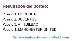 Lista de participantes: MANCHESTER UNITED, JUVENTUS, ATH.BILBAO, CORDOBA.