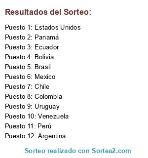 Lista de participantes: Estados Unidos, Colombia, Costa Rica, Paraguay, Brasil, Ecuador, Honduras, Perú, Mexico, Uruguay, Jamaica, Venezuela, Argentina, Chile, Panamá, Bolivia.