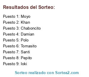 Resultados del sorteo: