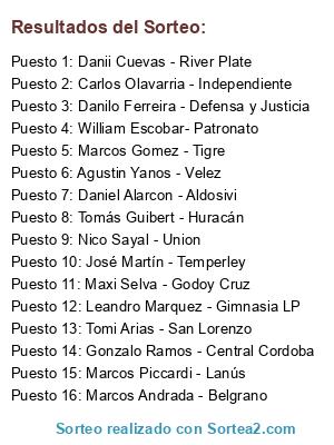 Resultados del sorteo: