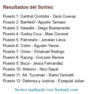 Lista de participantes: Alejo Ceccotti - Newells, Enzo Benítez - Racing Club, Danilo Ferreira - Defensa y Justicia, Jesus Fernandez - Union, Esteban Salgado - Talleres, Marcos Piccardi - Lanús, Juani Sanso - River Plate, Patricio Navarro - Argentinos.