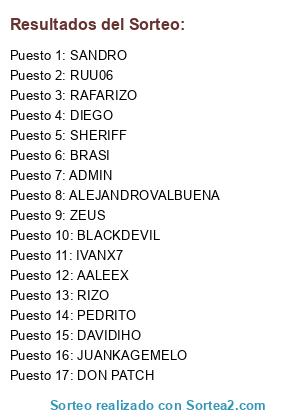 Lista de participantes: ADMIN, SANDRO, ZEUS, RIZO, AALEEX, JUANKAGEMELO, RUU06, DAVIDIHO, BRASI, SHERIFF, DIEGO, ALEJANDROVALBUENA, BLACKDEVIL, PEDRITO, IVANX7, RAFARIZO, DON PATCH.