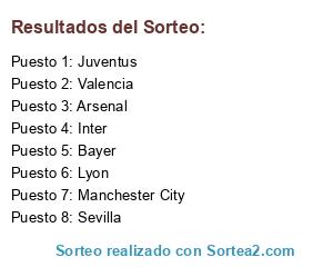 Lista de participantes: Valencia, Sevilla, Manchester City, Arsenal, Inter, Juventus, Lyon, Bayer.
