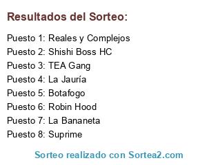 Lista de participantes: La Jauría, Reales y Complejos, Shishi Boss HC, La Bananeta, Botafogo, Robin Hood, TEA Gang, Suprime.