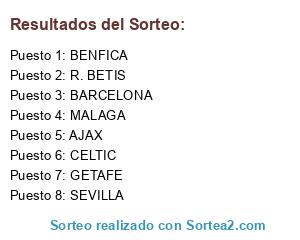 Lista de participantes: * SEVILLA, * VILLARREAL, * BARCELONA, * RIVER PLATE, * R. BETIS, * GALATASARAY, * GETAFE, * BENFICA, * SCHACKTAR, * AJAX, * MALAGA, * CELTIC.