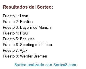 Lista de participantes: PSG, Sporting de Lisboa, Lyon, Benfica, Bayern de Munich, Werder Bremen, Ajax, Besiktas.