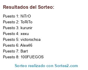 Lista de participantes: Alex46, ToRiTo, victorochoa, kurunir, xexu, NiTrO, Bart, 100FUEGOS.