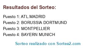 Lista de participantes: ATL.MADRID, BAYERN MUNICH, MONTPELLIER, BORUSSIA DORTMUND.