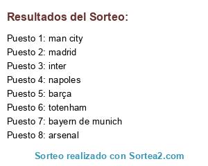 Lista de participantes: totenham, man city, barça, madrid, bayern de munich, inter, arsenal, napoles.