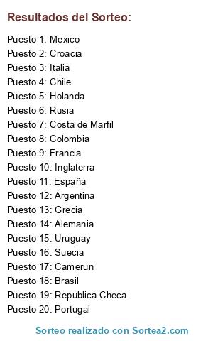 Resultados del sorteo: