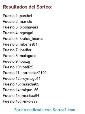 Resultados del sorteo: