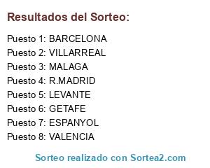 Lista de participantes: VILLARREAL, R.MADRID, VALENCIA, GETAFE, ESPANYOL, MALAGA, LEVANTE, BARCELONA.