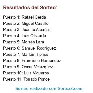 Resultados del sorteo: