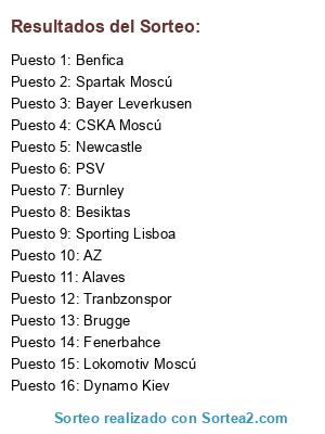 Lista de participantes: Tranbzonspor, Besiktas, Fenerbahce, Sporting Lisboa, AZ, Bayer Leverkusen, Burnley, Newcastle, CSKA Moscú, Lokomotiv Moscú, PSV, Benfica, Dynamo Kiev, Alaves, Spartak Moscú, Brugge.