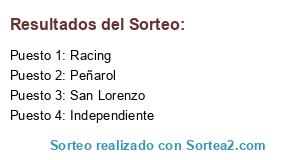 Lista de participantes: Racing, Independiente, Peñarol, San Lorenzo.