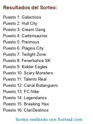 Lista de participantes: Plagios City , Twilight Zone, FC Nike , Scary Monsters, Canal Bullanguero, Hull City, Preimous , ClanDestinos, Carterisaurios , Breaking Hax, Galacticos, Fenerbahce SK , Cream Gang , Talento Real , Kidder Eagles, Legendarios.