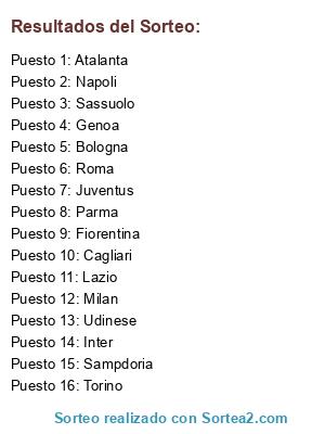 Lista de participantes: Fiorentina, Roma, Napoli, Milan, Sassuolo, Cagliari, Inter, Atalanta, Torino, Lazio, Parma, Sampdoria, Juventus, Genoa, Bologna, Udinese.